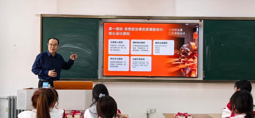 为贯彻学校领导关于人才培养的“反向设计,正向施工,产出导向”的工作要求,马克思主义学院坚持以学生为中心,积极行动、主动作为,注重通过创设专业、系统、优质的育人环境,不断提高人才培养质量。为有效提升2025级思想政治教育专业本科生的职业技能和高效准备“行知杯”师范生课堂教学综合技能竞赛,马克思主义学院密切关注和回应学生所需,2026年4月15日邀请大庆外国语学校附属学校副校长杨小军为学生做专题培训。马克思主义学院院长马吉芬教授、副院长郭元阳教授、思想政治教育专业执行负责人杨宏祥副教授、思想政治教育教研室李玉娣主任、辅导员汪丽媛与思想政治教育专业本科生一同参加培训。