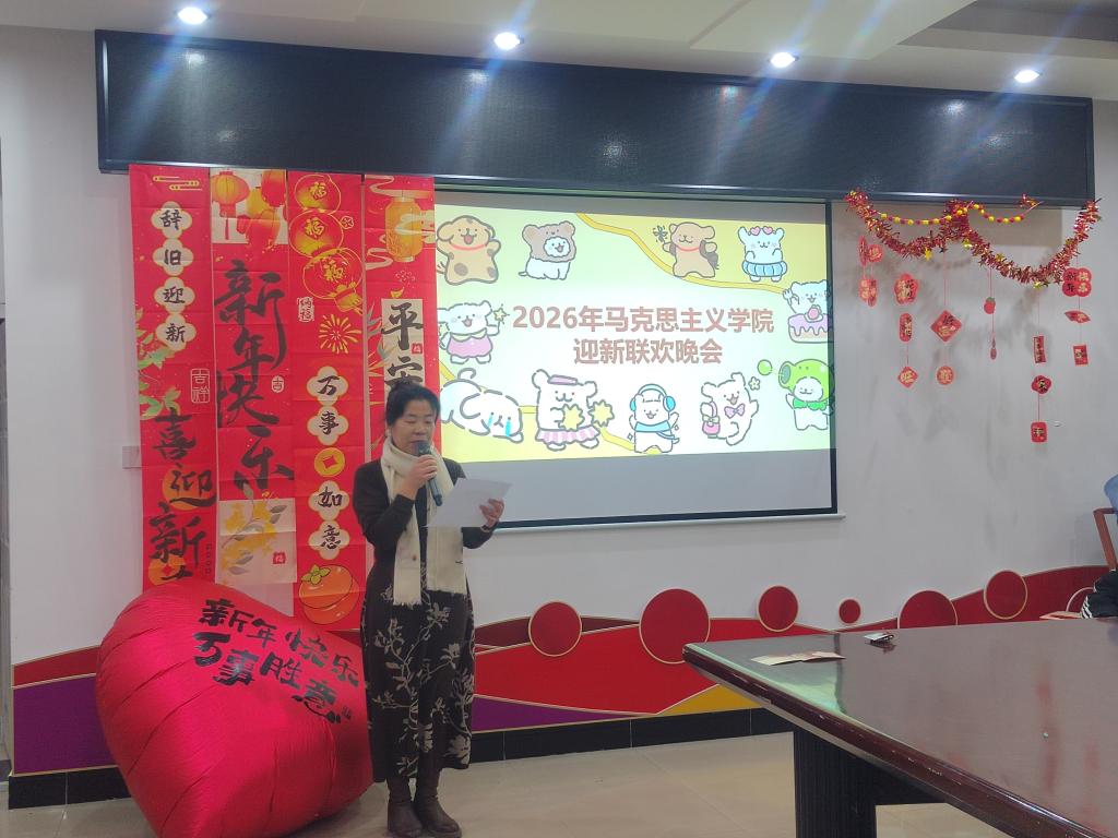 岁序更替,华章日新;青衿相聚,笃行致远。为迎接2026年元旦,营造喜庆祥和的氛围,将思政教育融入文化育人实践,2025年12月21日晚上18:00,马克思主义学院在五教三楼会议室举行2026年迎新联欢晚会。学院党总支书记赵桂英、辅导员汪丽媛与全体2025级新生,共赴这场青春与信仰交织、温情与奋进相融的欢乐时刻。