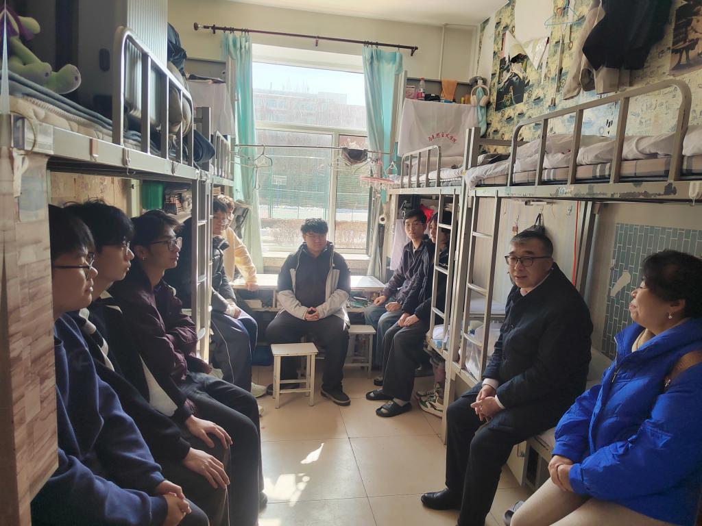 走访中,赵科学书记细致问询同学们在学习、生活、心理等方面是否存在困难,认真倾听诉求与建议。针对同学们提出的宿舍、食堂等问题,他现场逐一耐心解答,明确回应解决方案与时间节点,为同学们解除了后顾之忧。