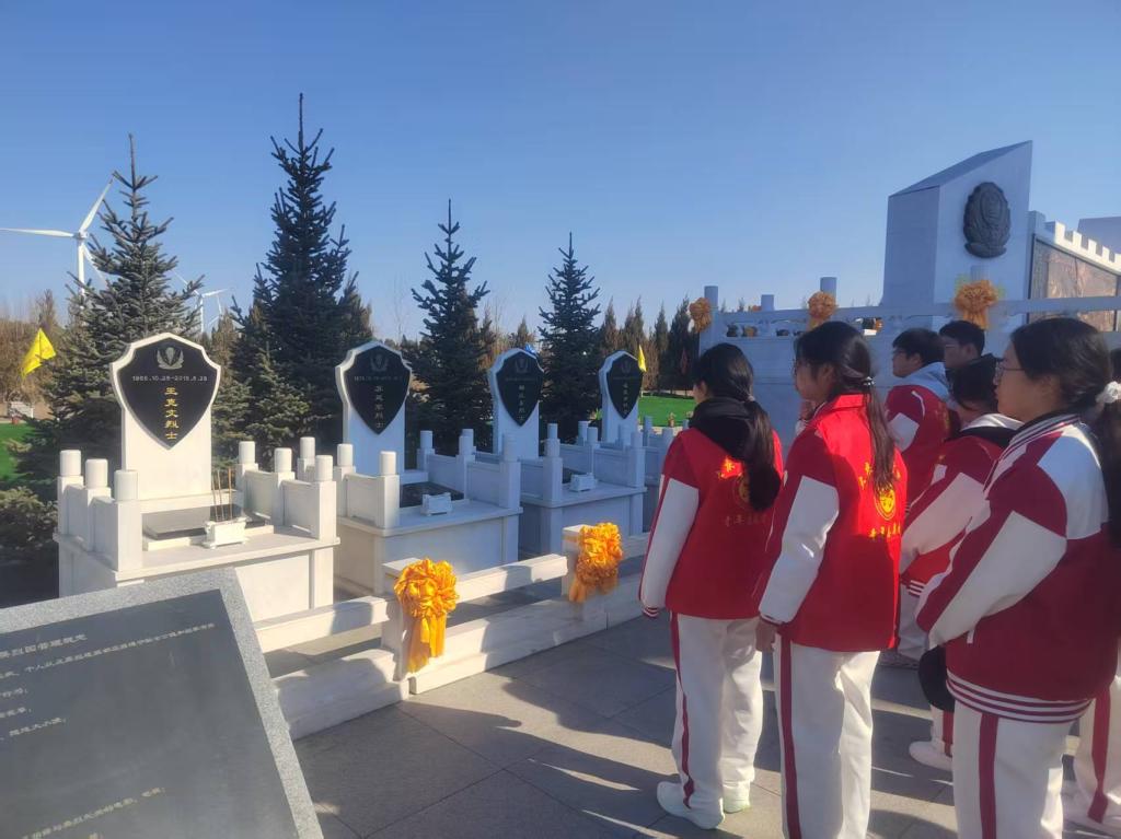 随后,师生们依次瞻仰毛主席塑像与人民楷模王启民同志墓碑,深情缅怀革命领袖的丰功伟绩,学习“新时期铁人”科技兴油、为国奉献的崇高精神,全体人员肃立致敬,表达由衷的崇敬与缅怀。